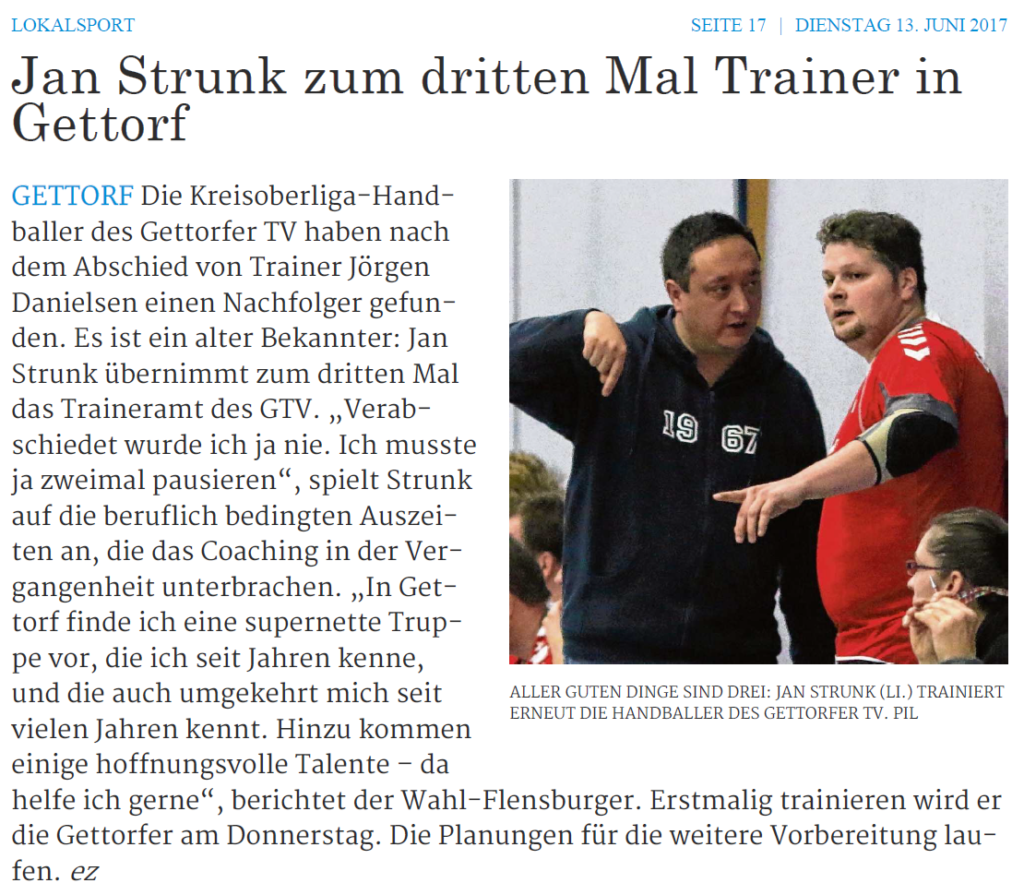 Jan Strunk zum dritten Mal Trainer in Gettorf